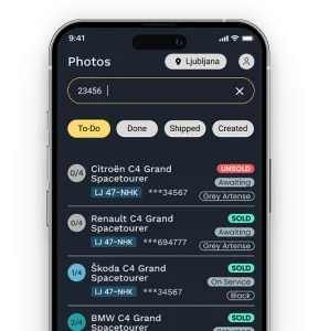 - Vodenemu fotografiranju: Aplikacija vas vodi skozi vsak korak za zajem vseh ključnih kotov vozila.