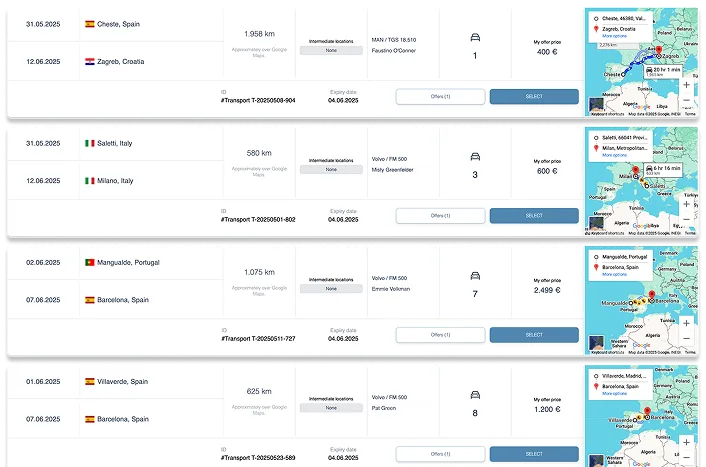 Transport Brokerage je zasnovan za optimizacijo logistike vozil po Evropi z združevanjem trgovcev, posrednikov in transportnih podjetij v pregleden in učinkovit digitalni ekosistem. Z možnostjo sledenja v realnem času, namensko zasnovanimi nadzornimi ploščami ter preverjenim omrežjem prevoznikov omogočamo zanesljivo sodelovanje in manj operativnih zapletov.